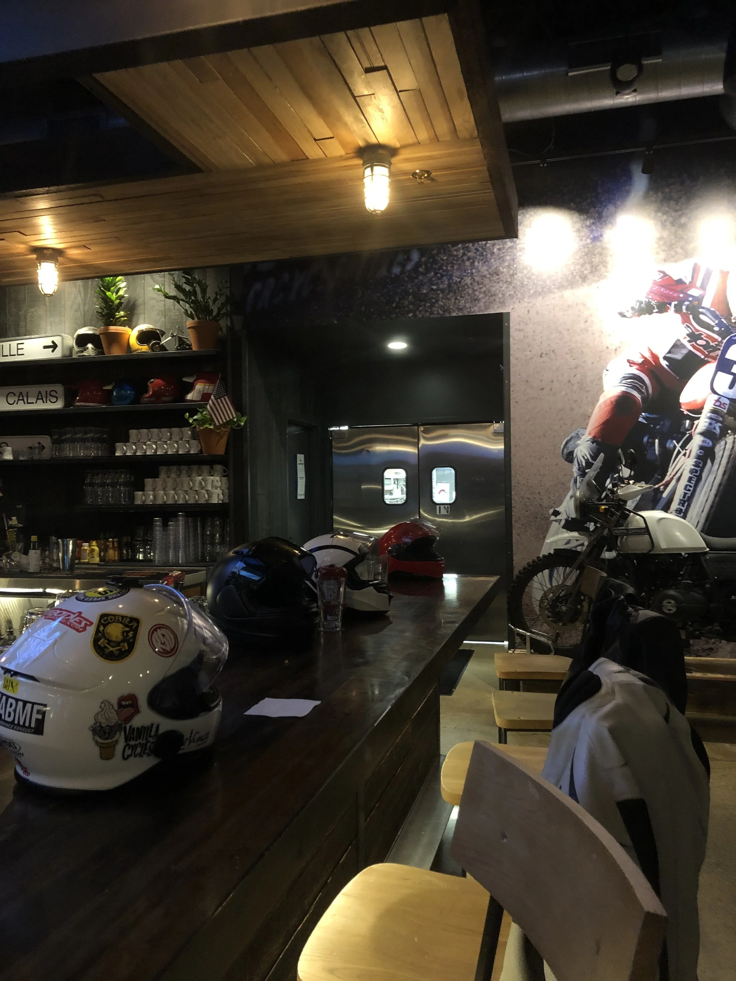 Groovy vibe, legit motorcycle riders using it as a pit stop…and with giant ceilings, and a great food and beer list - a legit destination instead of a mistaken one.